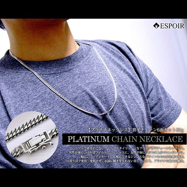 プラチナ850 喜平ネックレス Pt850 6面カットダブル 30g 50-60cm 造幣局検定マーク 刻印入り メンズ レディース 喜平 チェーン